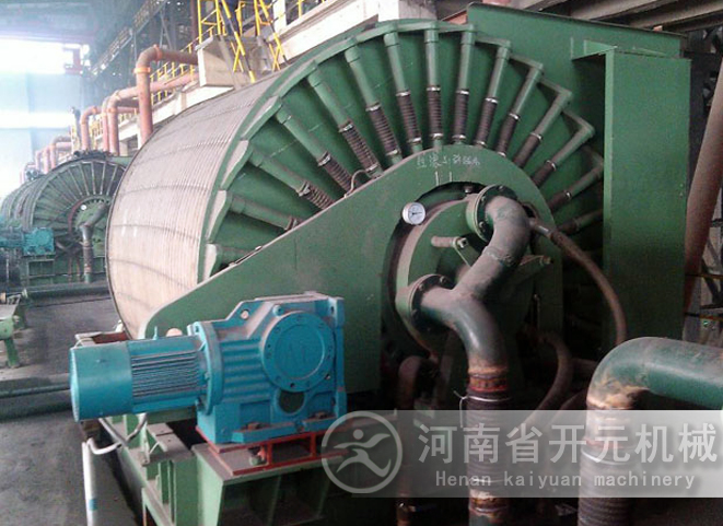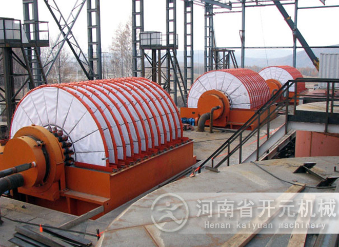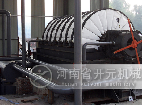真空過濾機是以真空負壓為推動力實現(xiàn)固液分離的設(shè)備,在結(jié)構(gòu)上,過濾區(qū)段沿水平長度方向布置,可以連續(xù)完成過濾、洗滌、吸干、濾布再生等作業(yè)。橡膠帶式過濾機具有過濾效率高、生產(chǎn)能力大、洗滌效果好、濾餅水分低、操作靈活,維修費用低等優(yōu)點。橡膠帶式過濾機可廣泛應(yīng)用于冶金、礦山、化工、造紙、食品、制藥、環(huán)保等領(lǐng)域中的固液分離,尤其在煙氣脫硫中的石膏脫水方面( FGD )有良好的應(yīng)用。